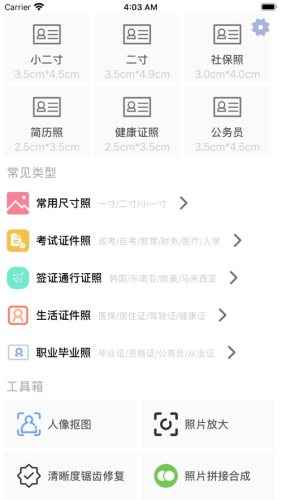 - 多种尺寸供你挑选,轻松制作证件照片。