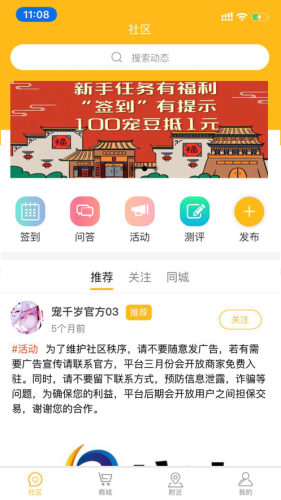 宠千岁app下载,一款为更多小伙伴提供宠物服务的在线社区商城,来宠千岁app可以随时分宠物趣事,更可以了解学习宠物知识和购买宠物产品,有需要就来下载。
