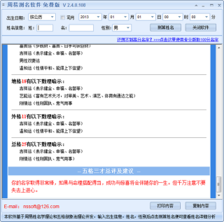 1、只要输入出生信息、性别和姓名,就可以得到根据五格剖象法,