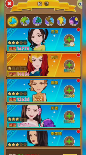 3、玩家可以招募自己的智囊团,总裁秘书,公关经理,精英员工,专属秘书,打造最强大的智能团队。