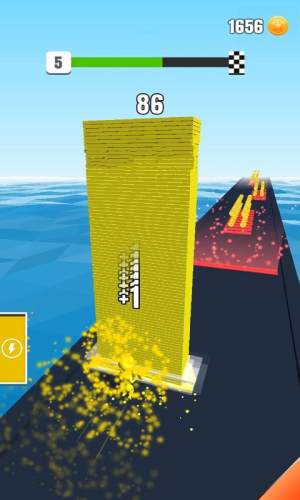 它的颜色也会发生改变,最终看看你推到的方块有多少米高。