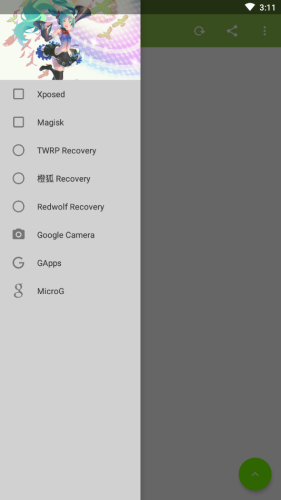 Xposed、Magisk、TWRP Recovery、橙狐 Recovery、Redwolf Recovery、Google Camera、GApps、MicroG