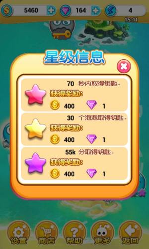 1、游戏拥有清新亮丽的美术风格,特色有趣的泡泡关卡。