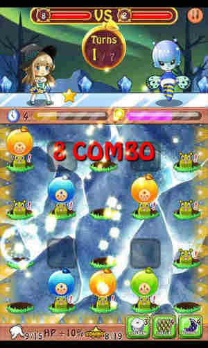 这一关的泡泡,是从上往下掉的,玩家要根据提示的颜色去消除掉下落的泡泡。下落的泡泡,可以用连线或点击的方式消除,顺带一提,连线连的多会有combo数加成哦,不过连线图中碰到其他颜色的泡泡将会中断连线,玩家需要重新连过,而且每错过一个当前提示颜色的泡泡,怪物就会回一部分血,打错泡泡时,怪物也会回一部分血。总的言之,这一类型也还是挺好上手,合理用连线组成高combo,造成高伤害,这就是下落型的玩法了。