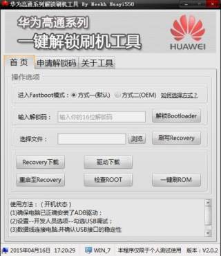 华为高通系列解锁刷机工具是一款专为华为高通系列手机制作的一键解锁刷机工具。为用户们提供支持实时在线获取解锁码,只需要将手机连接电脑即可获取解锁码,让你的板砖轻松的重获新生,需要的用户赶快来下载体验吧!