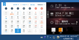 单击右下角的魔方时间会弹出一个拥有时间、日历、天气的大界面