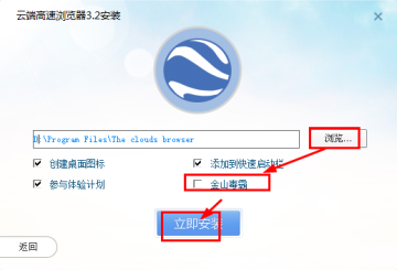 在自定义安装中可以选择安装目录,取消安装附带程序后继续安装,如下图