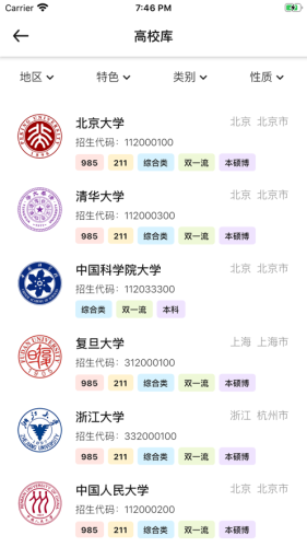 学生可以通过条件智能筛选自己理想的学校,更好的填报志愿,能填报理想的大学。