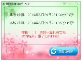 科鼎时间同步助手是一款北京时间校准工具,开启软件后,主界面窗口会显示北京时间与本地时间,并精确告诉您本机时间与实际时间的快慢,点击立即同步按钮,本机时间就会快速校准成功,并提示“您的计算机时间非常精确,请继续保持”,欢迎下载体验。