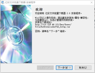 1、下载程序YiCaiBatDownloaderPub_Setup.exe,点击运行按钮,出现主界面,请单击下一步开始安装软件