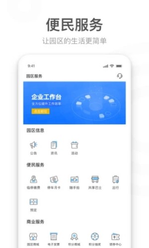 园圈-私有版是一个立足园区为园区内企业和员工提供服务的一个平台,能够帮助企业快速了解到园区新动态、通知公告、业务办理、政策法规、费用清单等相关服务。