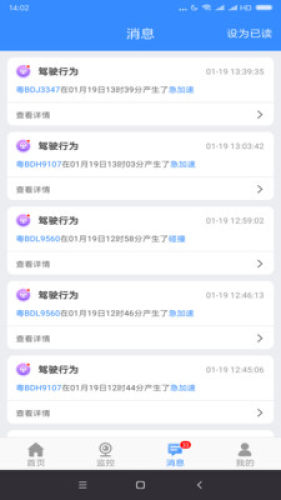 【告警信息】推送车辆产生的警情以及司机行驶过程中的驾驶行为告警信息