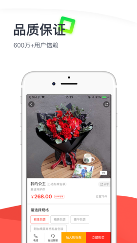 方便快捷,让您随时随地通过手机订购到鲜花、蛋糕和进口红酒等礼品。