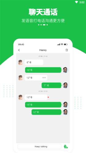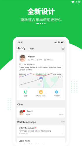 4、语音聊天:通过APP和手表佩戴者进行“微聊天”,还能和手表佩戴者进行双向通话;