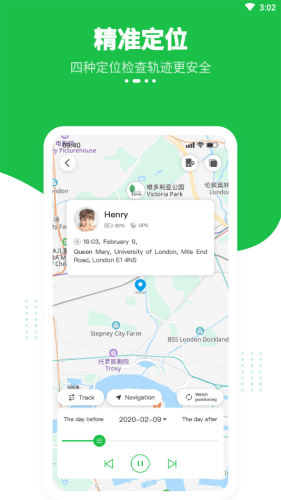 1、位置服务:GPS+WIFI+LBS+G-Sensor多重精准定位,通过轨迹查询,能清晰的知道智能设备佩戴者的行进路线和行进方向;