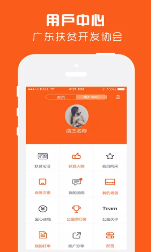 下载安装好忆莲app,成为好忆莲移动店长;扶贫前沿,时刻了解扶贫信息;首页,首页列表;农产宝,购买,销售扶贫产品;用户中心,广东扶贫开发协会。