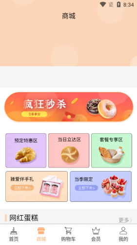 预定特惠区、当日立达区、套餐专享区、臻爱伴手礼、当季限定。