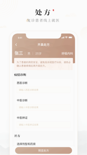 - 处方,复诊患者线上就医
