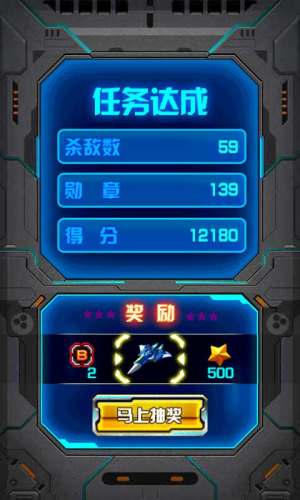 传统弹幕飞行射击游戏玩法配以触控操作,只需划动指尖就能轻松操纵飞机移动。全新的战机和武器升级系统,在游戏难度的不断上升中进化你的战机,各种不同的强化功能让你拥有更大的战斗力。功能要一定的金币才能升级,需要通过游戏不断杀敌来积攒金币。内含上百个勋章,特有的成就系统让你享受宇宙英雄的荣耀。更有BOSS和无尽杀戮模式等待开启,尽情体验对战BOSS和独挑千军的快感吧!