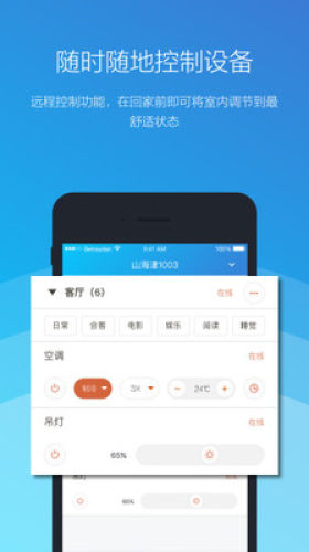 实时了解室内温度、湿度、空气质量,时刻守护家人健康。远程控制功能,在回家前即可将室内调节到最舒适状态。
