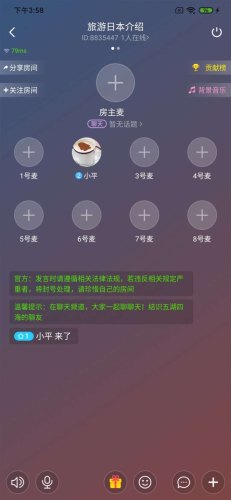 【语聊房间】:相亲房、陪聊房、情侣房、K歌房等的个性房间,等你来参与。
