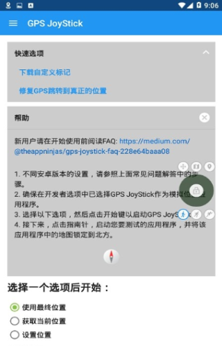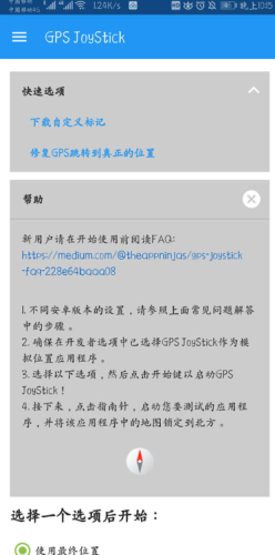 4、首先要根据使用指南根据自己的安卓版本进行设置,并且确保在手机的开发者选项中已经选择gpsjoystick作为模拟位置应用程序。