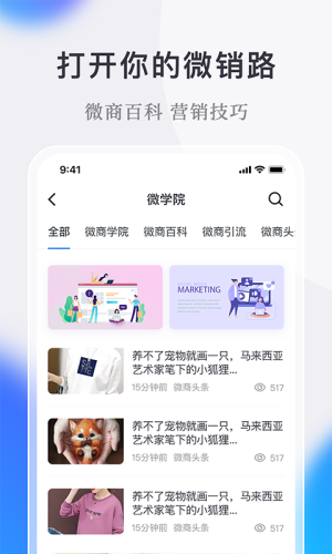 【微商学院】多种微商课程,1000+微商团队老大、品牌创始人、行业专家分享微商经验,干货文章,打造朋友圈圏、快速出货、营销话术培训。