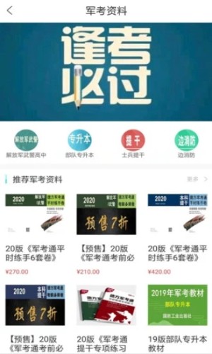 3、适用对象:参加解放军、边防消防公安、武警内卫、部队专升本、士兵提干等五大系列军考考试的现役军人。