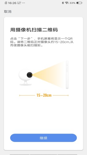 请将二维码正对摄像头约15~20cm,从而使摄像有能扫描到。