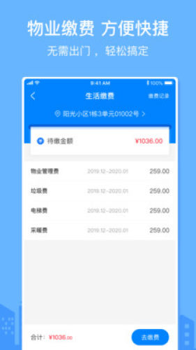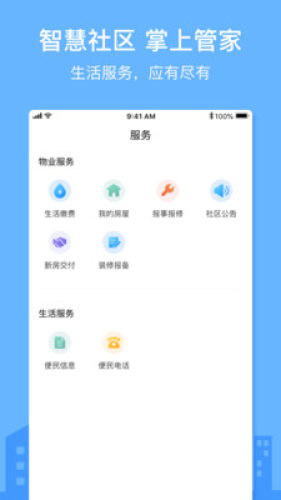 支持生活缴费、社区活动、报事报修、便民信息、邻里互动、物品租借、二手交易