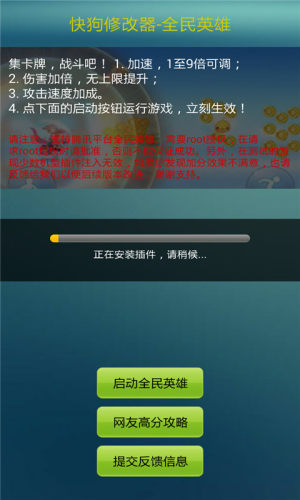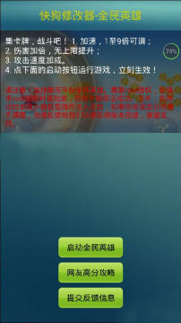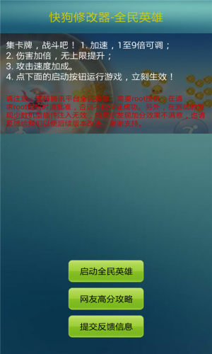 快狗游戏修改器全民英雄拥有游戏加速,最高可调速到九倍,并能够无上限提升伤害,攻击加速快,快狗修改器全民版集开牌,功能更强大,通过无阻力。