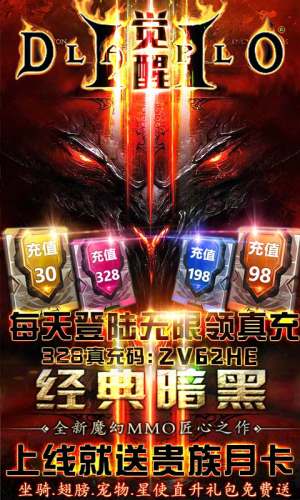 《暗黑觉醒(送328R真充)》传承魔幻情怀,以欧美魔幻特色为基调,采用顶级3D粒子光晕特效,流畅的骨骼动态建模,专属的职业外观系统,霸气逼人。浓烈唯美的魔幻宏大场景,酷炫的战斗招式,激动人心大型GVG玩法,以及各种呆萌的宠物、拉风的坐骑、炫酷夺目的翅膀,相信会给你带来惊艳的游戏体验。