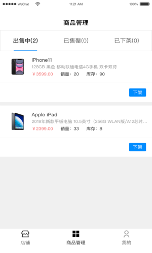 1.随时上下架店铺商品,查看店铺资金状况