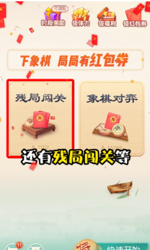 开心下象棋领红包是真的吗,开心下象棋真的可以赚钱吗,开心下象棋的确是可以赚钱的,玩家只要和电脑对战,有个残局闯关模式,闯过的关卡越多,获得的红包券也就越多,那就真可以赚钱啦,提现也挺方便的。