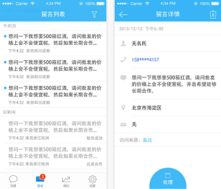 -留言支持详情查看、多种状态处理和按状态筛选。