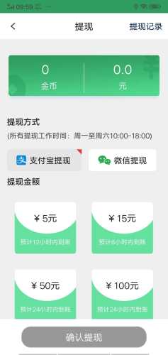 5、弯扁担收益满5元可申请提现,支付宝和微信皆可,12小时内审核到账,无手续费!