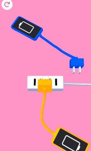 充电模拟游戏。游戏中,玩家要将所有充电器插在线板上,顺利的将手机充满电并完成关卡。