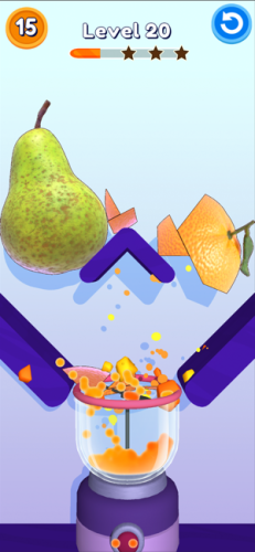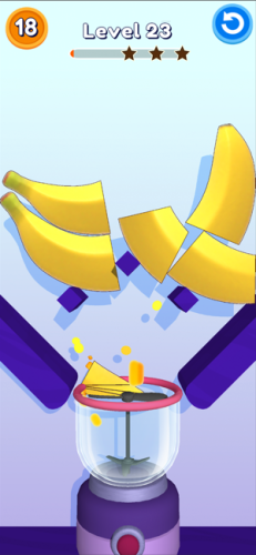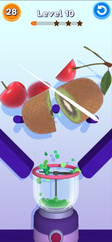 你每个闯关的任务就是将搅拌机上方的水果完美的切割,使其能够全部的掉落在搅拌机里面,这样你就可以制作一杯不错的果汁。使用最少的切割次数来完成任务是你要考虑的,这样的成绩才会更好。