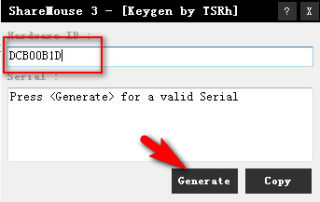 打开keygen.exe,粘贴刚刚的ID,点击Generate生成注册码,注册码覆盖到剪贴板。