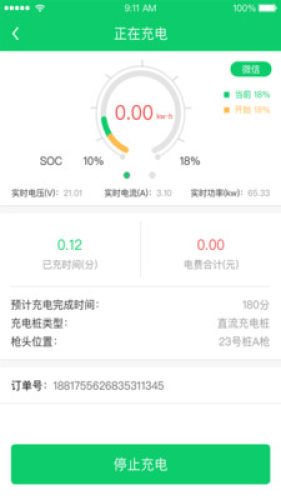 充电中实时查看充电电量、SOC、电压、电流、功率、充电时长等信息;