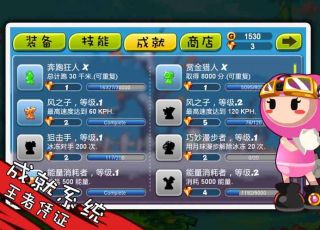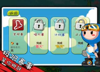 游戏开始前会告诉玩家需达到多少名次才可以获得星星奖励,最多为三颗星,星星可以用来兑换商品或解锁关卡。每一小关结束后,系统会分析场次、时间、奖金等等,另外针对名次会给予星星奖励。玩家可以在商店中升级装备或者是提升能力技能等。例如装备升级,每次升级都可以提升该装备的素质,如升级帽子可以增加移动时速等。