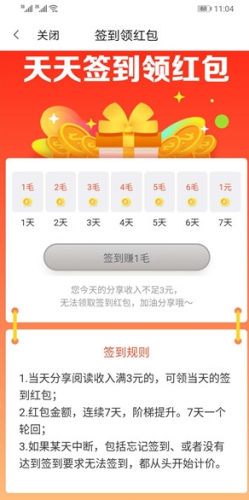 每日签到必得0.5~30元红包,红包直接到账微信上。