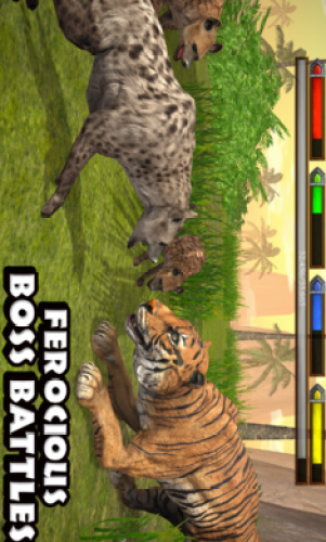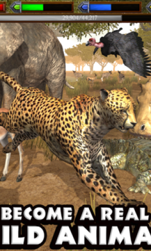 玩家将扮演非洲草原里的动物,一共有十种动物供你选择,可以选择猎豹鳄鱼疯狂猎杀,小心被反杀;可以选择大象羚羊过过食草动物的悠哉生活;注意躲开食肉动物;游戏中还有个老虎作为boss可供你挑战,你还可以组成自己的动物家庭,养育自己的孩子。