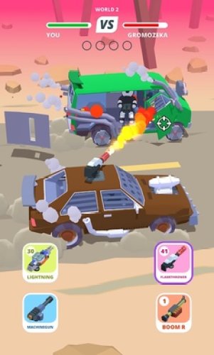 烈火战车是一款刺激的射击类手游。在这片无边无际的沙漠上,只有车辆在飞速行驶,但是这些车有些不一样,它们都是装备着各种威力强大的武器装备,而你就是那些车辆的驾驶人之一。组合出你的专属战车,并为它装备强大的火力。