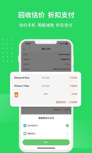 用户在商城中可直接购买心仪的商品。同时也可以通过手机完善估价后,进行以旧换新,折扣支付下单。