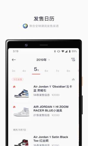 4、【发售日历】聚合全球海量潮流单品发售渠道,订阅区域上新提醒。轻松管理抢购日程,让抢购计划更有序!