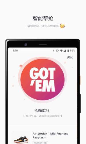 2、【智能帮抢】动态轮询匹配,24小时监控商品余量,动态调整下单策略,检测到补货后多线程抢购,即便手机关机也不会影响抢购任务,轻松 GOT‘EM 补货。
