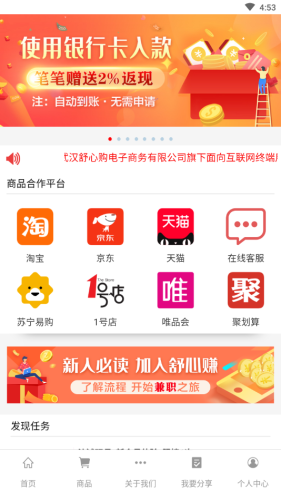 舒心赚是一款电商购物APP,依靠互联网平台把线下购物和新时代的电商购物链接起来,创新型电商购物平台,一站式购物让您的生活好!