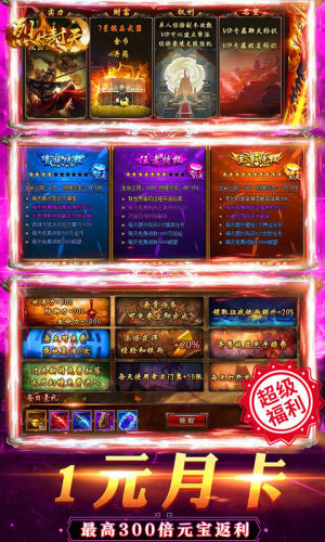 2、特色福利二:1元超低月卡,每日领8888元宝,登陆豪礼更有200万元宝免费领!