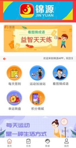锦源以多元娱乐为基础,每天可参与看图猜成语,运动健身打卡,并积累相应的积分。